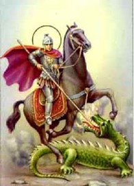 Jak svatý Jiří přišel ke svému přívlastku „drakobijec“? Podle legendy Jiří přišel jednou v provincii Libyi do města, jež se jmenuje Silena. Ve velikém jezeře se tu skrýval jedovatý drak. Přicházel k městským hradbám a svým jedovatým dechem ohrožoval obyvatele města. Obyvatelé mu proto k jezeru nosili denně ovce, aby uspokojili jeho hlad a drak svou blízkostí nezamořoval město. Pak ovce docházely a drakovi byla denně předkládána jen jedna ovce – a jeden člověk určený losem. Jednou los padl na jedinou královu dceru. Ta již byla vedena k jezeru, když náhodou Jiří jel kolem. Jak bylo jeho rytířskou povinností, pokusil se princeznu zachránit – nasedl na koně a draka napadl. Ranou kopí (nebo meče???) jej vážně zranil a zkrotlého přivedl do města. Tam slíbil králi a všem obyvatelům, že když se dají pokřtít, draka definitivně zabije. Pokřtěno pak bylo údajně na dvacet tisíc lidí (pozn. – zde se v legendě praví „nepočítaje v to děti a ženy“ – zřejmě tehdy byl jen muž počítán za člověka – nebo je to jen „takový překladatelský oříšek“?).